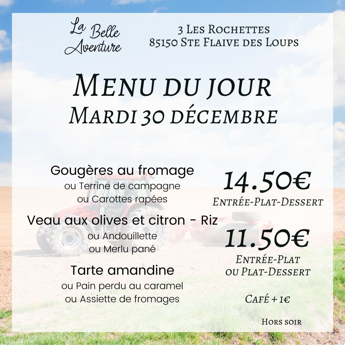 Réservation au 02 51 34 03 65 ou en ligne