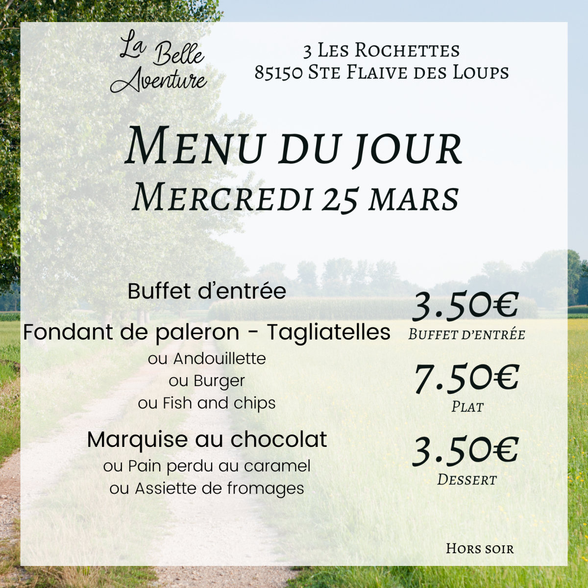 Réservation au 02 51 34 03 65 ou en ligne